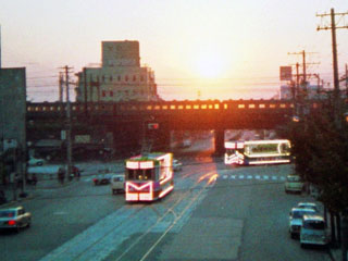 夜は煌びやかな電飾を点灯(水主町電停)