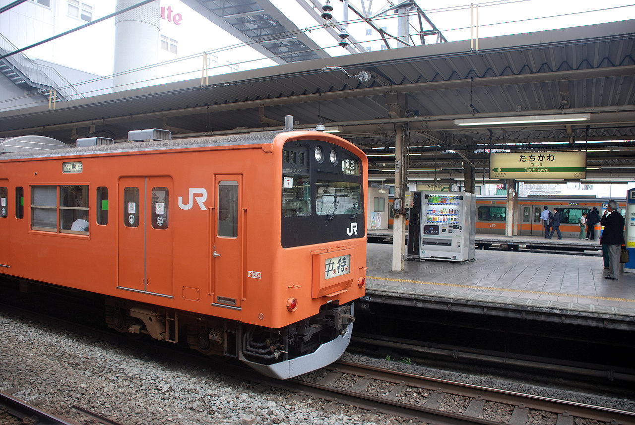 南武線205系 快速川崎行きです。2014年3月ダイヤ改正より快速電車は矢野口、中野島も通過します。これにより日中の登戸止まりの各駅停車も稲城長沼まで延長されます。JR武蔵中原駅にて 2013.12