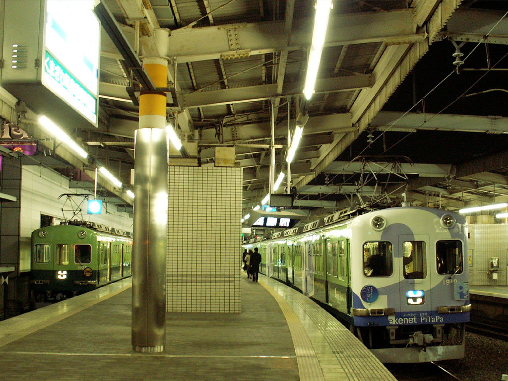 -(267 KB)京阪宇治線と近鉄京都線は、中書島〜観月橋間の中間付近で立体交差します。中書島からだと線路が一直線なので、走行中の近鉄電車を中書島ホームから見ることが出来ます。