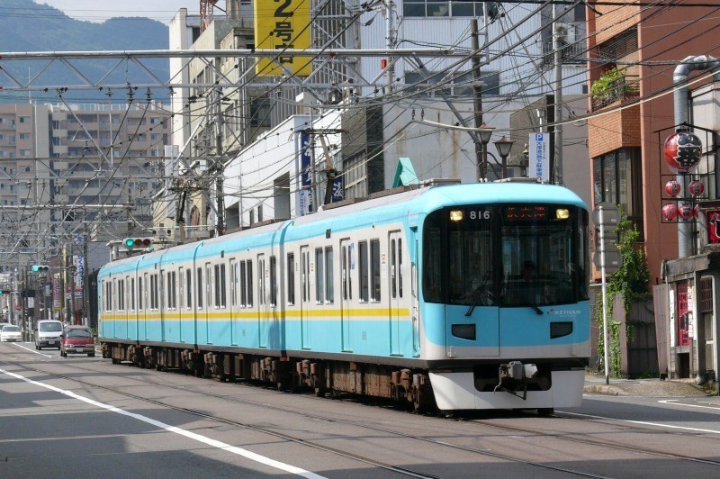 -(208 KB)錦織車庫へ向かう816。この4両編成が別所までの併用区間やカーブ区間をニョロニョロと抜けてゆき錦織車庫へと進んでいきます。