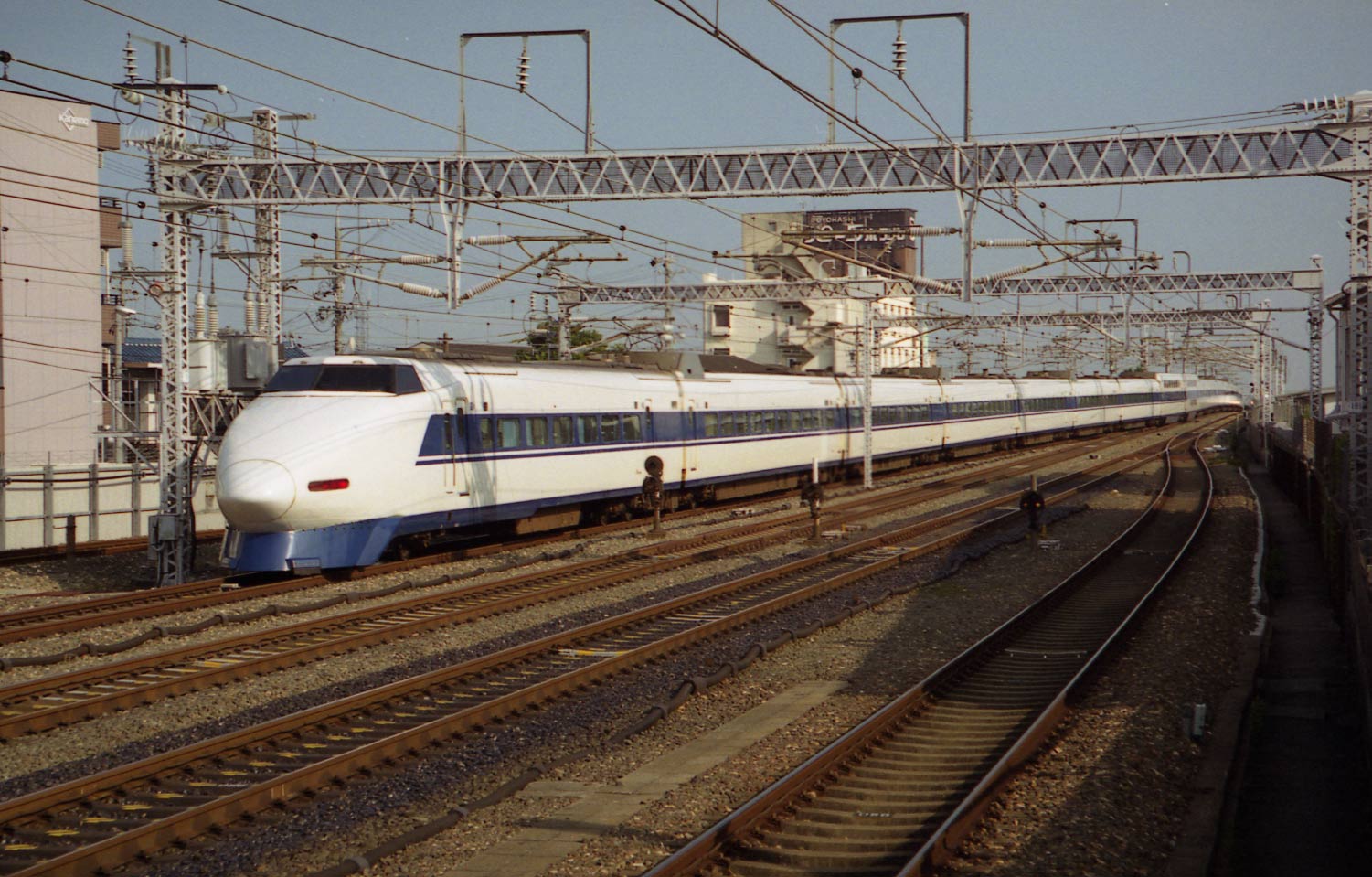 -(121 KB)どこで撮ったかは忘れてしまいました(神田?)が、200系同士の離合です。奥のは0系タイプ、手前のは100系タイプと、二種類が撮れたのは好都合でしたが、0系タイプの顔が映ってないのは残念です。