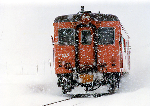 フラノエクスプレス撮影のついでに写したキハ22?−220です。通過少し前雪がひどくなってきましたが、雪に埋もれつつ撮影に没頭していました。若かった頃ですから・・・。
