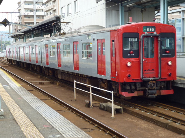 -(159 KB)JR九州で唯一の直流電化区間、筑肥線(西唐津〜姪浜⇔福岡市地下鉄)を走る直流電車の103系1500 番台です。