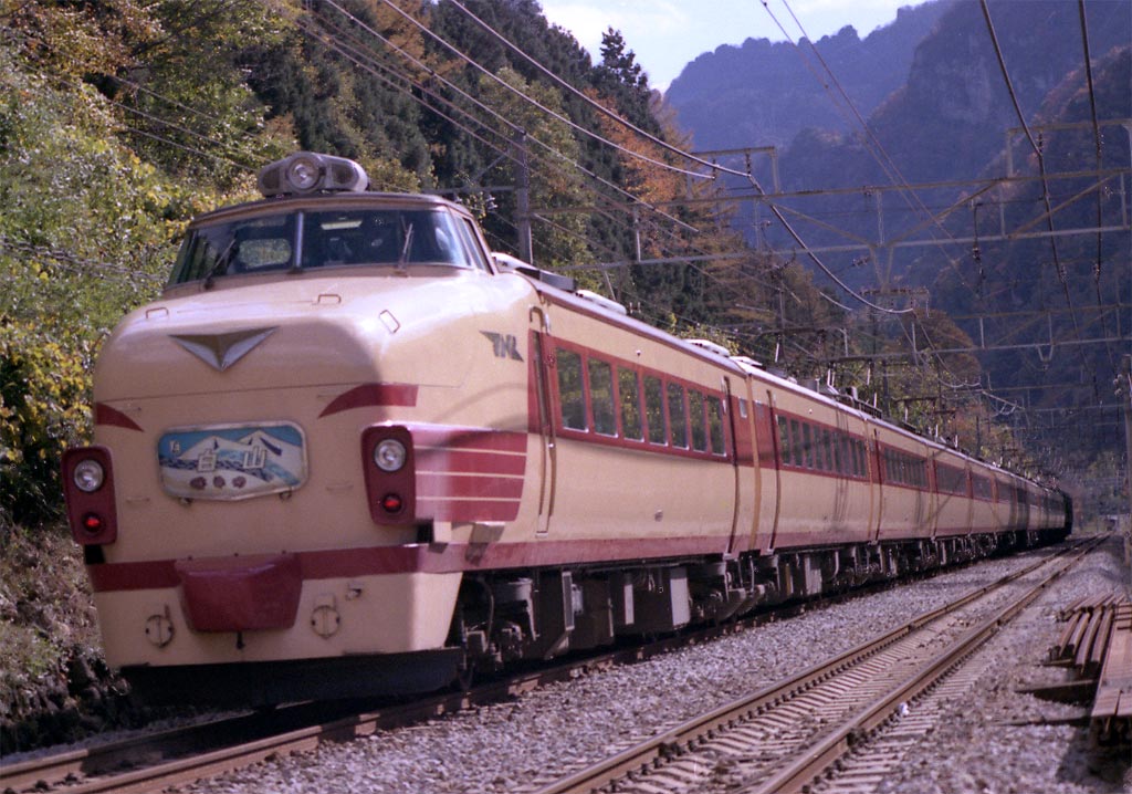 昭和55年に「比叡」に乗った時に159系が混じってました。「鷲羽」には新快速落ちのブルーライナーカラーの153系が混ざってたっけ。 |