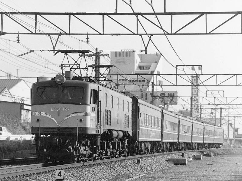-(87 KB)東海道を下る宮原区の81系和式客車、牽引機は127号機。