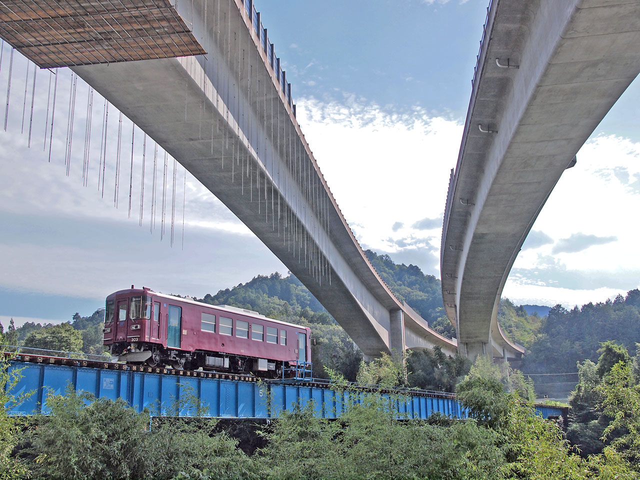 空を区切るダイナミックな道路橋の曲線と絡めたこの写真、私は素敵だと思います。光線の状態でいろんな絵が出来そうですね。
