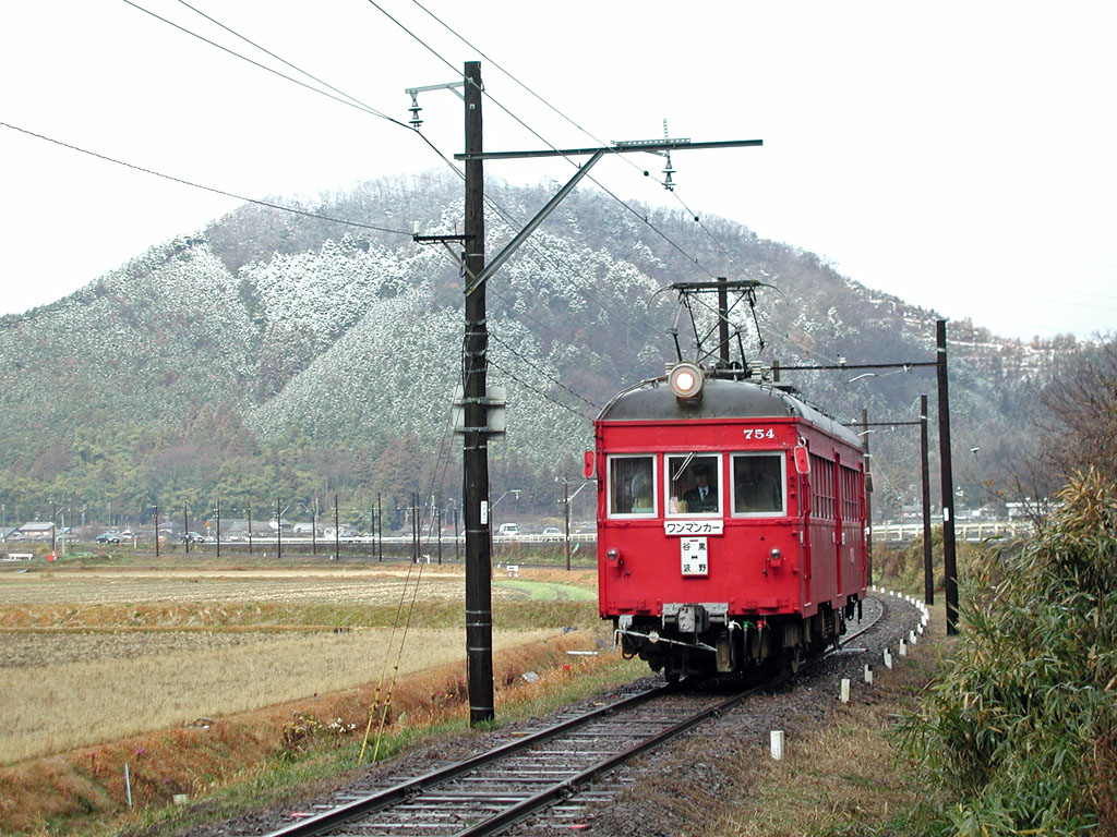 冬の谷汲線を行くモ754(赤石〜長瀬)(FREE)撮影日:[2001,1,3] SVGA XGA |